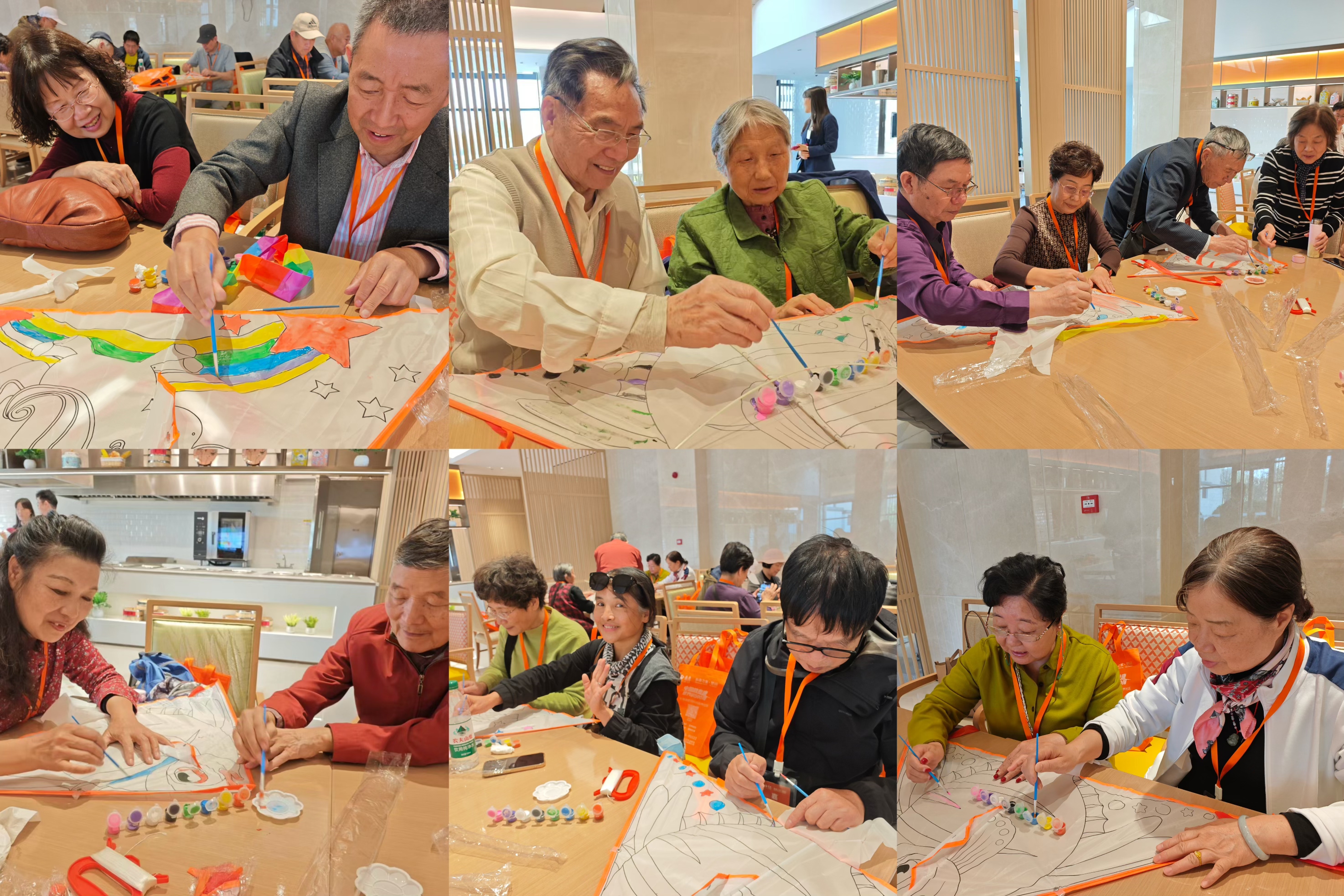 中餐在楚园餐厅的自助餐体验式进行,专为老年人精心制作的菜品丰富、口感适宜、营养全面,受到一致好评。午饭后,迎来了老同志们最为期待最感兴趣手工制作环节——楚园工作人员为大家精心安排了手工制作风筝和放风筝活动。大家三三两两一组,用五彩颜料将自己心中最美的画描绘在了风筝上。拿着自己精心制作好的风筝拍照留念,老同志们一个个开心得像小朋友一样。风筝做好了当然要放飞了,大家沿着东湖绿道严西湖段,边徒步、边放风筝,沐浴着秋日暖阳,开心极了!大家不停地用手机相互拍照、录像,记录下了开心欢乐的每个瞬间。