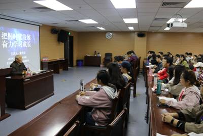 朱老师用生动简洁的语言,告诉我们时代的发展与每个人息息相关,我们应该始终高举中国特色社会主义的伟大旗帜,做有信念、有梦想、有奋斗、有奉献的年轻人,才能度过有意义的人生。他还勉励同学们自觉地利用好大学阶段的时光,勤奋学习。