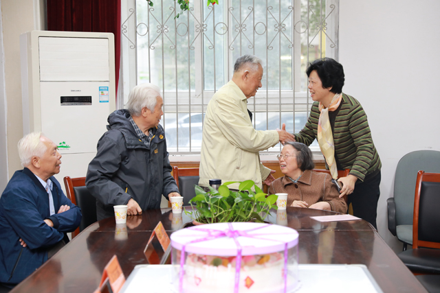 与会老同志们精神炯朗,互道问候,互致祝福,欢声笑语,其乐融融,80岁的程时荫教授坐着轮椅,在女儿的陪同下,全程参加聚会,兴致勃勃。