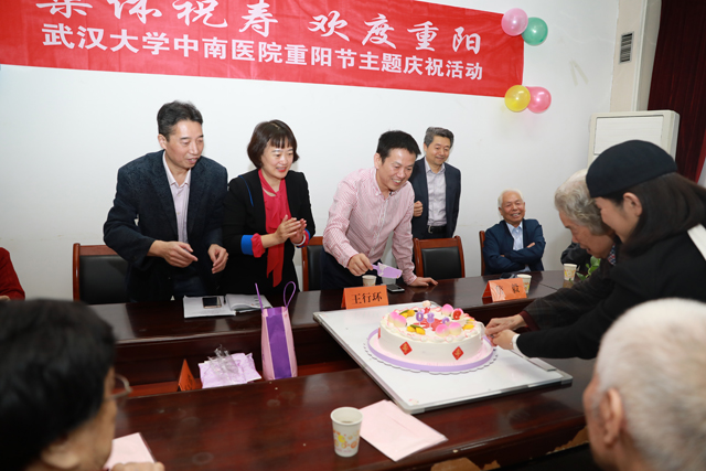 “人生易老天难老,岁岁重阳,今又重阳”,明天就是重阳节,16日上午,离退休处会议室张灯结彩,乐声悠扬,洋溢着节日的喜庆氛围,数十位老寿星齐聚一堂。医院党委书记张元珍、院长王行环、纪委书记詹毅、老协会长赵克勤、杨国樑及离退休各支部书记等为老寿星们集体祝寿。