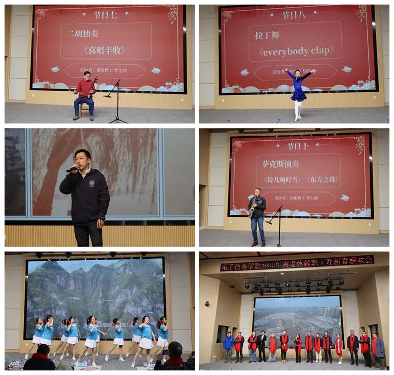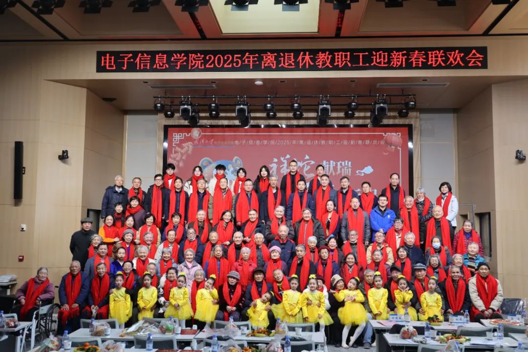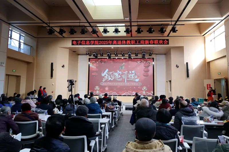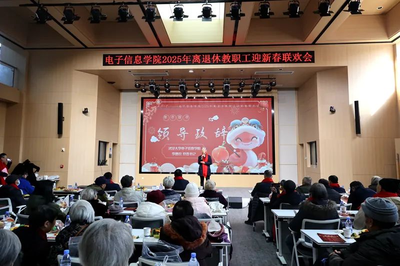 灵蛇贺岁,福满珞珈。1月10日电子信息学院徕卡报告厅举办了2025年离退休教职工迎新春联欢会。学院离退休教职工代表、党委书记李德识教授、李海波副书记、陈洪波副院长,地球与空间科学技术学院袁志刚副院长、新利客服武汉校友会代表和学院部分在职人员以及学生代表一起参加了活动。