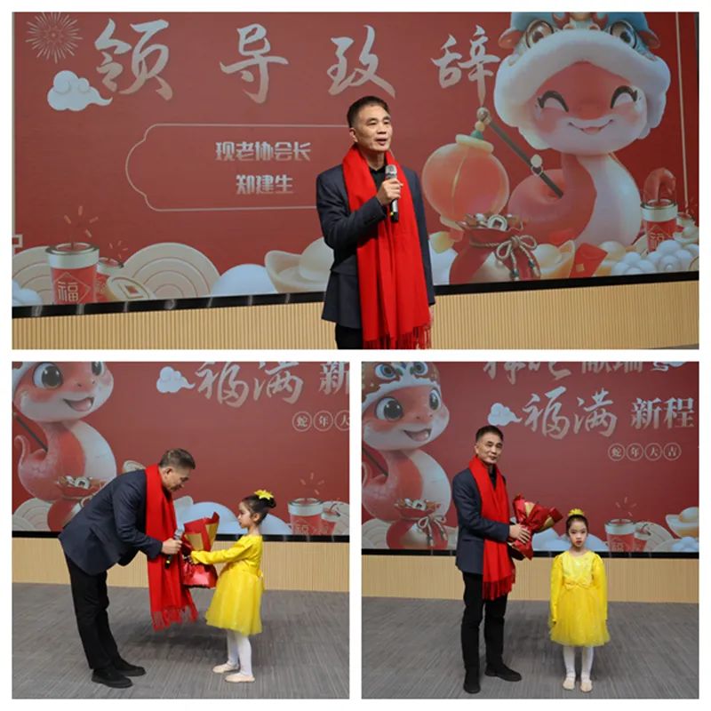 学院领导现场给老同志代表送去福字,之后进入文艺表演环节。