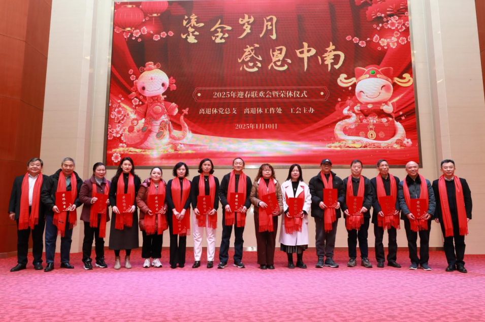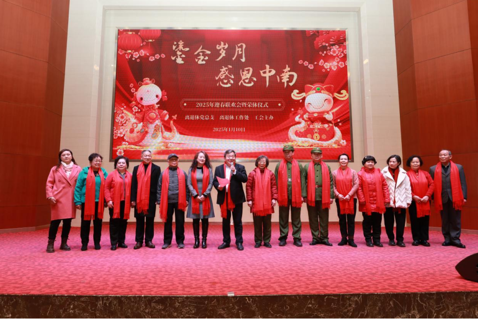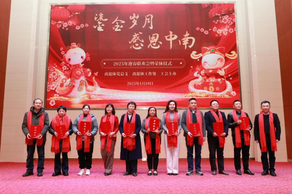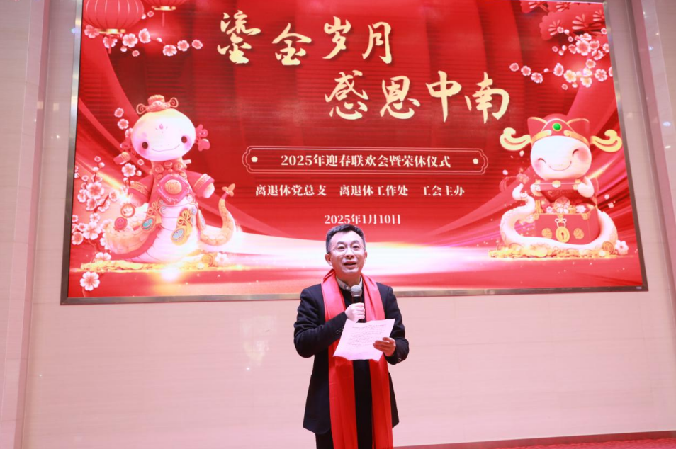 1月10日下午,中南医院离退休职工“鎏金岁月 感恩中南”迎春联欢会暨荣休仪式在医学部8号楼裕璧厅举行。本次活动由医院离退休党总支、新利18xl、工会联合主办,400余位退休老同志相聚一堂,共叙浓情。新利客服离退休处副处长吴仪,中南医院党委书记刘争,党委副书记、纪委书记侯祚勇,副院长潘振宇、梁辰,总会计师杨发勇,医院高质量发展委员会副主任余祥庭及相关职能部门负责人受邀参加。