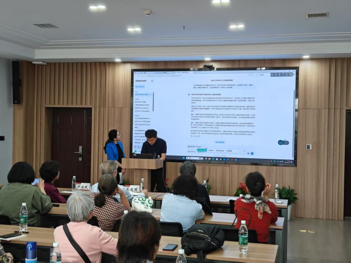 杨晓岚代表计算机学院欢迎大家来计算机学院参加科普通识教育第一讲活动。她介绍了计算机学院教学科研基本情况以及在AI领域的研究成果。她表示人工智能赋能健康医疗、交通出行、居家生活等新的应用场景,重新定义了“老有所为”“老有所安”。学校老年大学(老年科技大学)组织开展科普学习,正当其时,希望学员们有所乐,有所得,有所用。