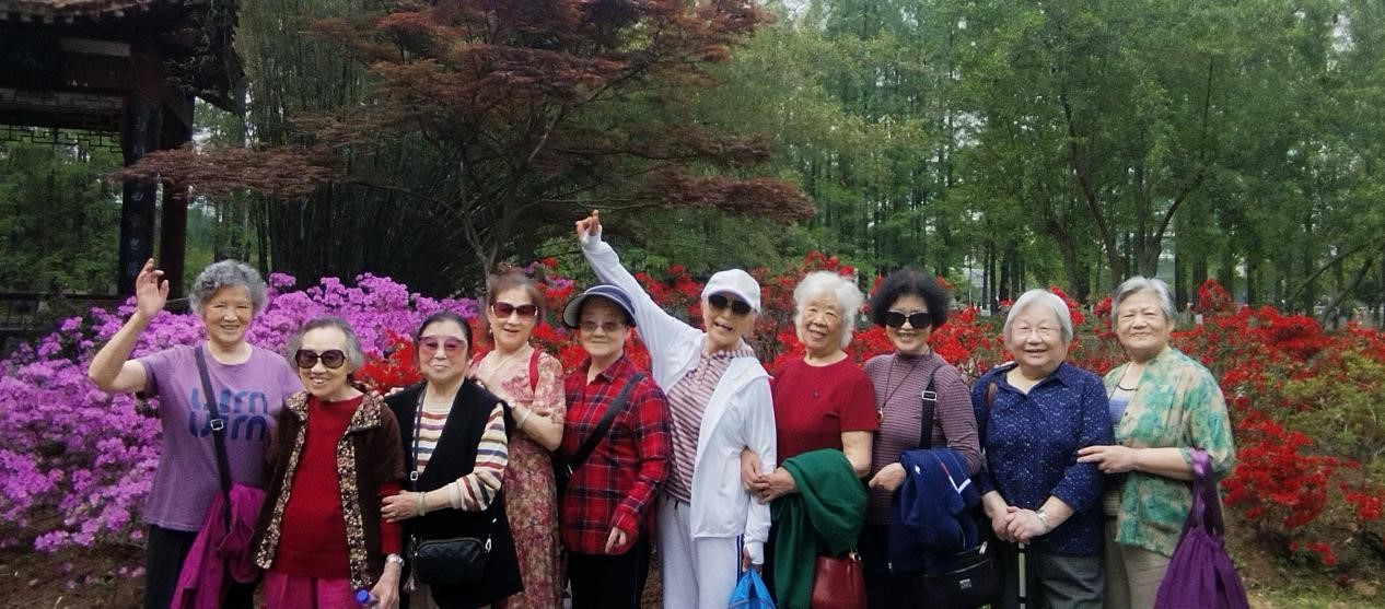 林荫道上,老友新朋执手话流年。有人轻抚花瓣追忆青葱岁月,有人在登山路上一马当先重现当年神采。随行导游、志愿者和保健科工作人员化身“引路人”和"移动健康驿站",带领大家一探春光,同时也时刻关注大家的健康状况。当午后的阳光透过新叶,在石径洒下碎金般的斑驳,一张张笑脸如花般在阳光下绽放,旺盛的生命力比这春光犹盛三分,可谓"莫道桑榆晚,为霞尚满天。"