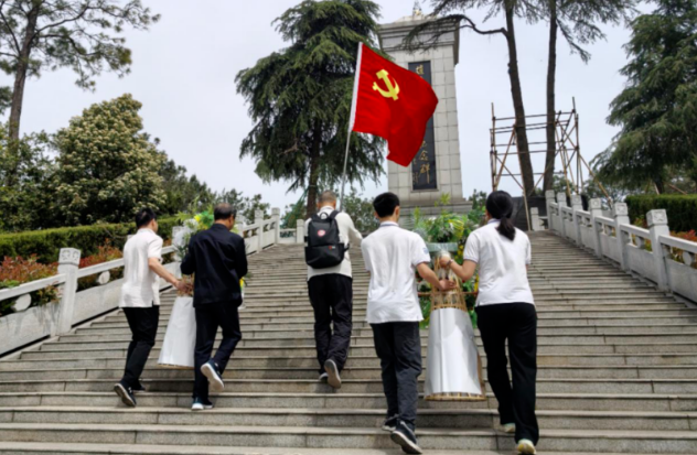 上午11时,全体党员肃立于革命烈士纪念碑前,党员代表缓步向前,将寄托着无限哀思的花篮敬献于纪念碑前。全体党员怀着无比崇敬的心情向革命先烈三鞠躬,深切缅怀为民族解放事业英勇献身的革命先烈。"我志愿加入中国共产党......"在曾峥同志的领誓下,全体党员面对鲜红党旗,高举右拳,重温入党誓词。