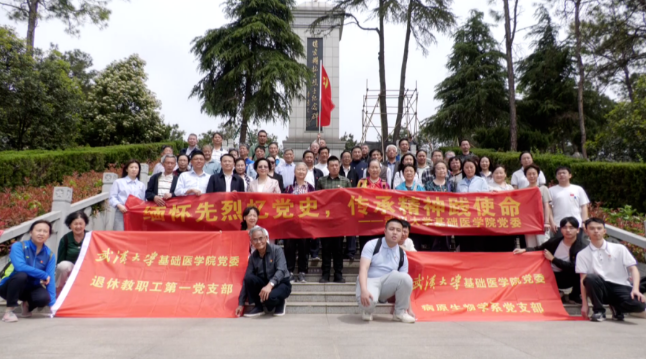 今年是中国人民抗日战争暨世界反法西斯战争胜利80周年,为纪念在抗日战争中英勇奋战而牺牲的革命英烈,学党史践行党的初心使命,退休党总支、本科生党总支和病原生物学教师党支部于4月16日联合组织党员赴安陆市赵棚镇革命烈士陵园开展"传承红色基因 赓续精神血脉"主题党日活动,通过实地研学、缅怀先烈、重温誓词等形式,引导党员传承红色基因,汲取奋进力量。新利客服关工委副主任沈瑞年、基础医学院党委书记熊瑛、副书记曾峥等54名党员参加了此次主题党日。