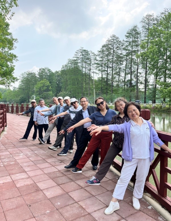 此次春游活动正好巧遇青山公园第十四届杜鹃节,五大类杜鹃齐聚园中五彩缤纷,特别是新引进栽培的20余种武汉较罕见的杜鹃,其中有深红色杜鹃“红皇冠”,小巧绚丽;粉红色的重瓣杜鹃“王妃”,清秀典雅;单瓣深粉色杜鹃“粉丝带”,舒展轻巧。更难得的是这三种杜鹃一年能开三季花,即初春、仲夏、深秋都能一睹花容。适逢杜鹃节,同志们兴高采烈地漫步在杜鹃花丛中拍照留影,感受“与花共舞”愿时光永驻的精神魅力,深刻理解了习近平新时代中国特色社会主义思想关于“青山绿水就是金山银山”的丰富内涵和深远意义。亭台楼阁,小桥流水,漫步在长廊中,像穿越一条蜿蜒曲折的时间隧道仿佛能听到中国改革开放发展史的回声,非常有意境;伴随着浓郁的香气沿着长廊继续前行,不远处传来了一群老年声乐爱好者自娱自乐吹拉弹唱的音乐声,歌声悠扬与游人的欢笑声此起彼伏奏响了一曲夕阳红的华彩乐章。大家置身于“花色+香味+音乐”的三重环绕氛围,使人陶醉,安然自若;缓缓移步在公园里,犹如徜徉在花海里,仿佛没有丝毫杂念,身轻如燕,此园此景特别适合老年人去游玩观赏,令人流连忘返。