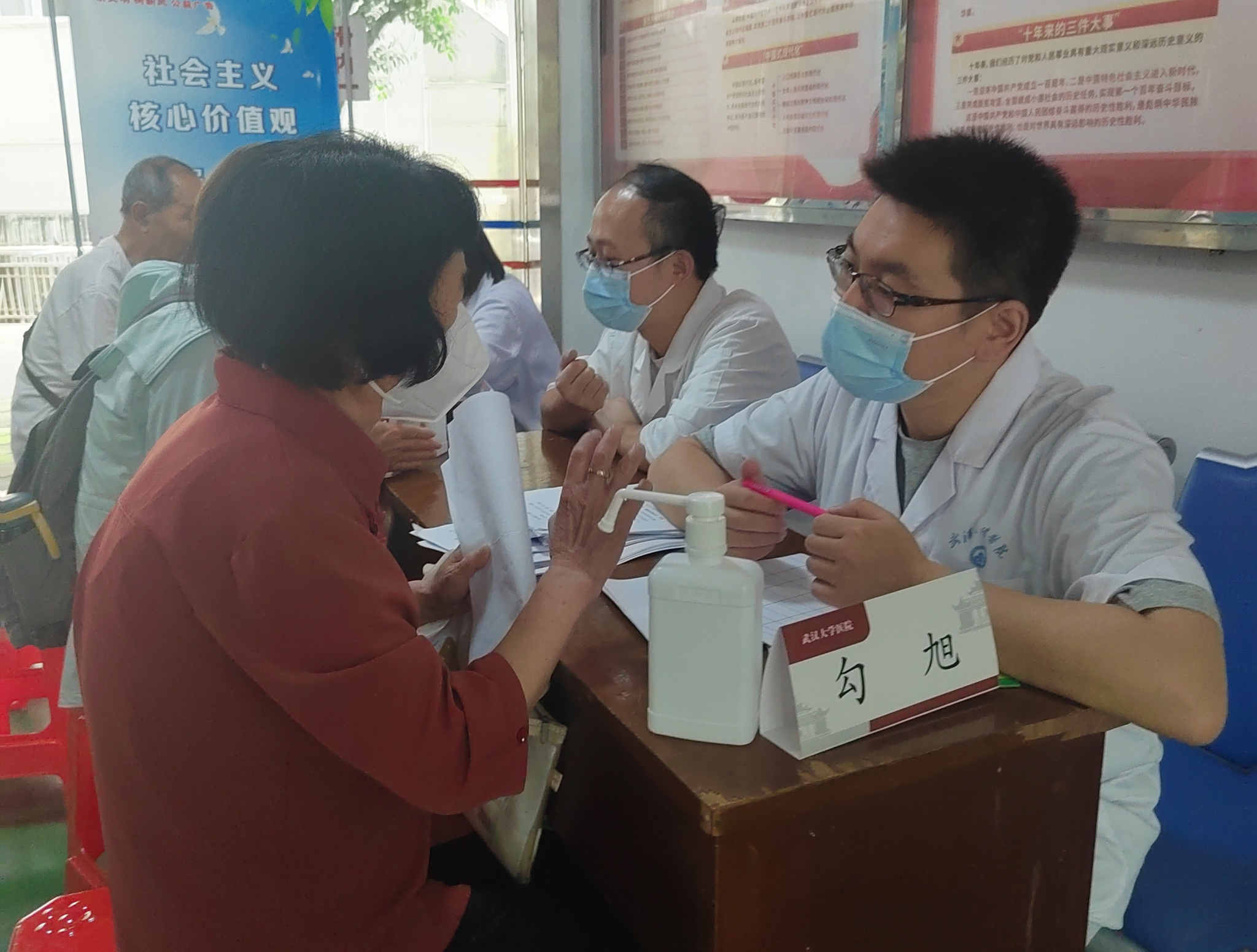 义诊活动邀请了武汉市中心医院的张旭艳教授和新利客服中南医院李新教授,专家们认真问诊、检查每一位居民,针对内分泌疾病,向他们普及预防保健知识、提出诊疗方案。
