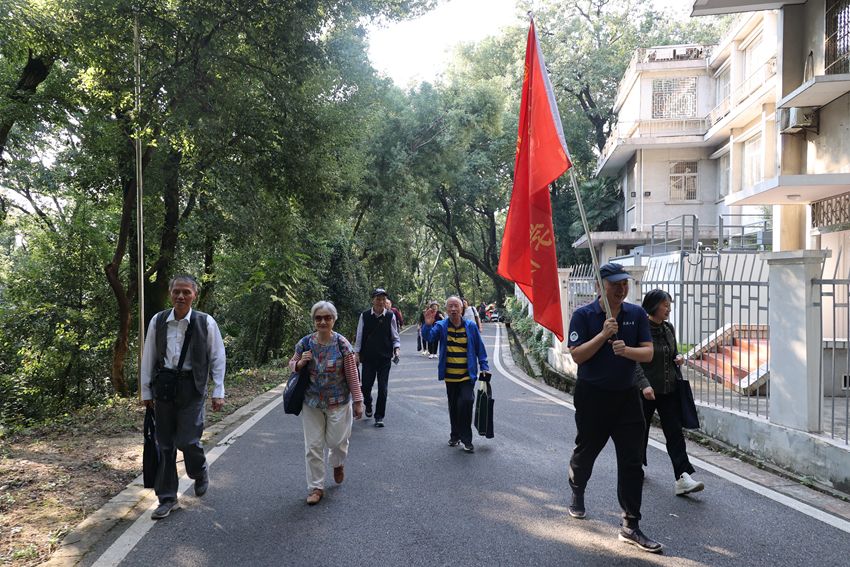 正是金秋送爽、叠翠流金的美好季节,座谈会后,大家齐聚珞珈山脚下,开始了重阳登高健步活动。老同志与机关党支部党员三俩为伴、相互搀扶,个个精神抖擞,充分展示了电子信息学院离退休教职工及师生的团结精神和坚韧毅力。