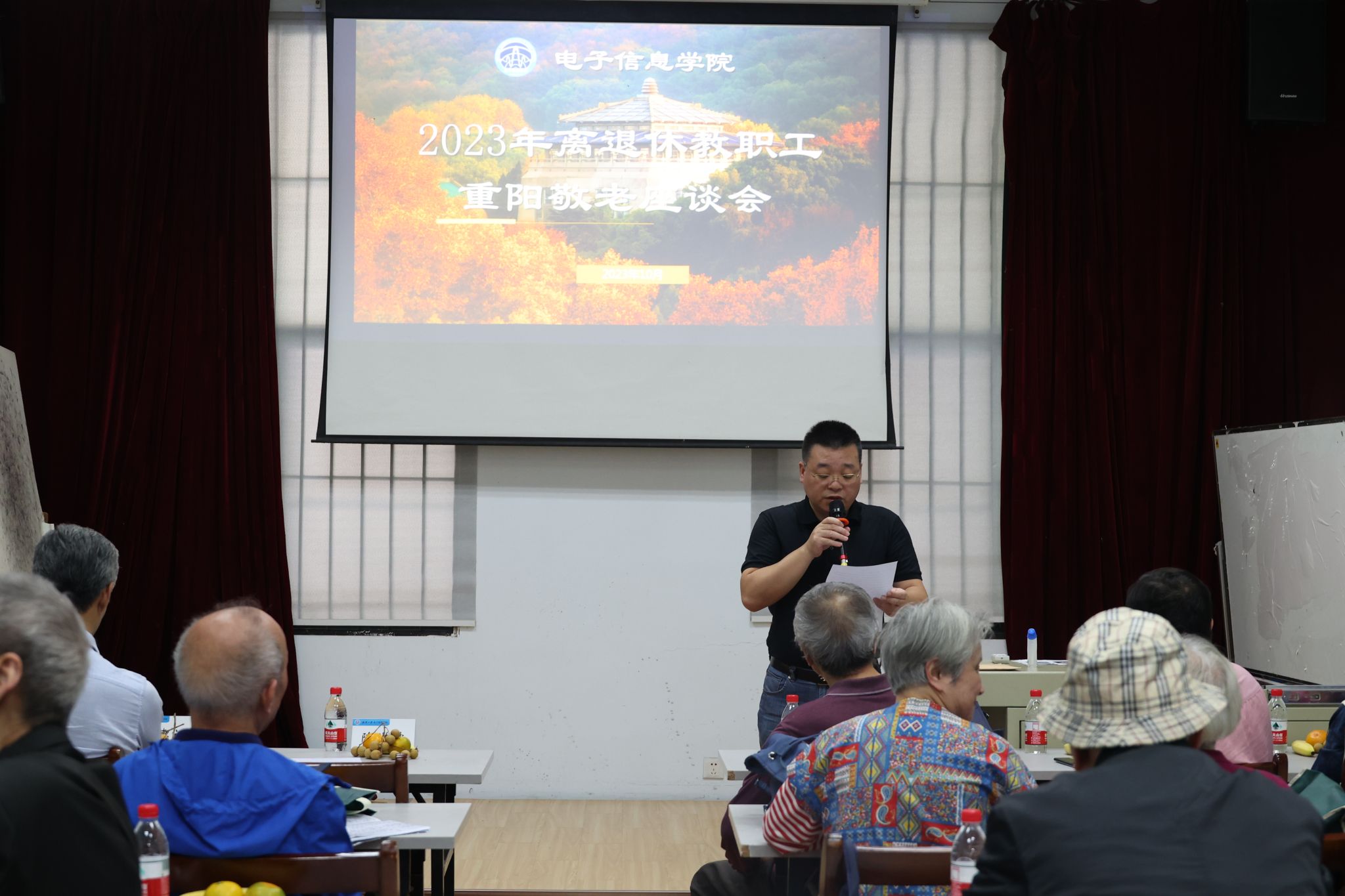 为弘扬中华民族尊老、敬老、爱老的传统美德,表达对老一辈电子信息学院离退休教职工的关心和敬爱,让老同志度过一个温馨而愉快的重阳节,在九九重阳节即将到来之际,10月18日下午,电子信息学院开展“九九重阳 登高敬老”暨退休教职工与机关党支部联合主题党日活动。院党委书记李德识、副书记陈阳、副院长陈洪波与近百名退休教职工、机关党支部党员共同参与活动,座谈会由陈洪波副院长主持。