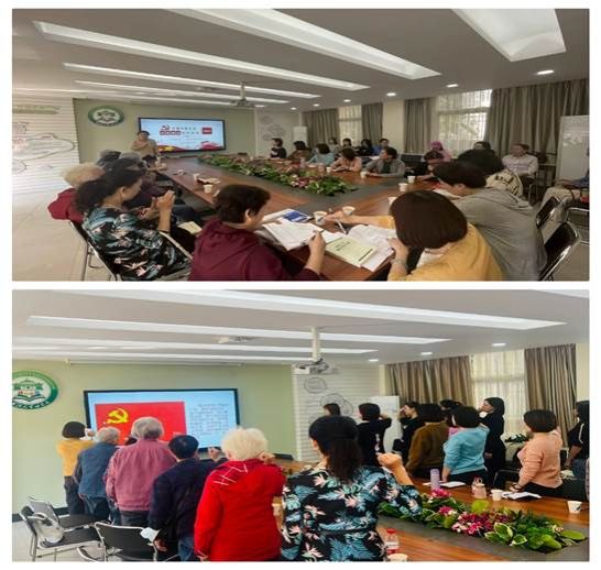 幼儿园支部党员与离退休同志开展了共学活动。活动中,全体党员面向党旗庄严宣誓,重温入党誓词,坚定入党初心,在职及离退休老同志共同开展党规党纪学习,共同围绕幼儿园全面就如何提升服务学校“双一流”建设展开热烈讨论。通过共学活动开展,让离退休老同志有更多的使命感、参与感,做到“离岗不离心”,共同为单位建设添砖加瓦。