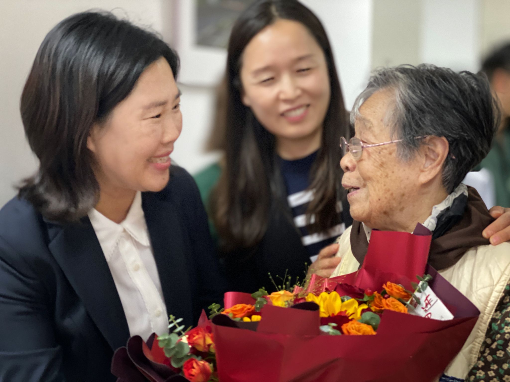 党办主任徐红云、医务处副处长徐明、护理部主任冯毕龙分别代表行政后勤职能部门、临床医技科室、护理部各科,给老寿星献上花束,表达浓浓的敬老之情,传递深深的中南传承。