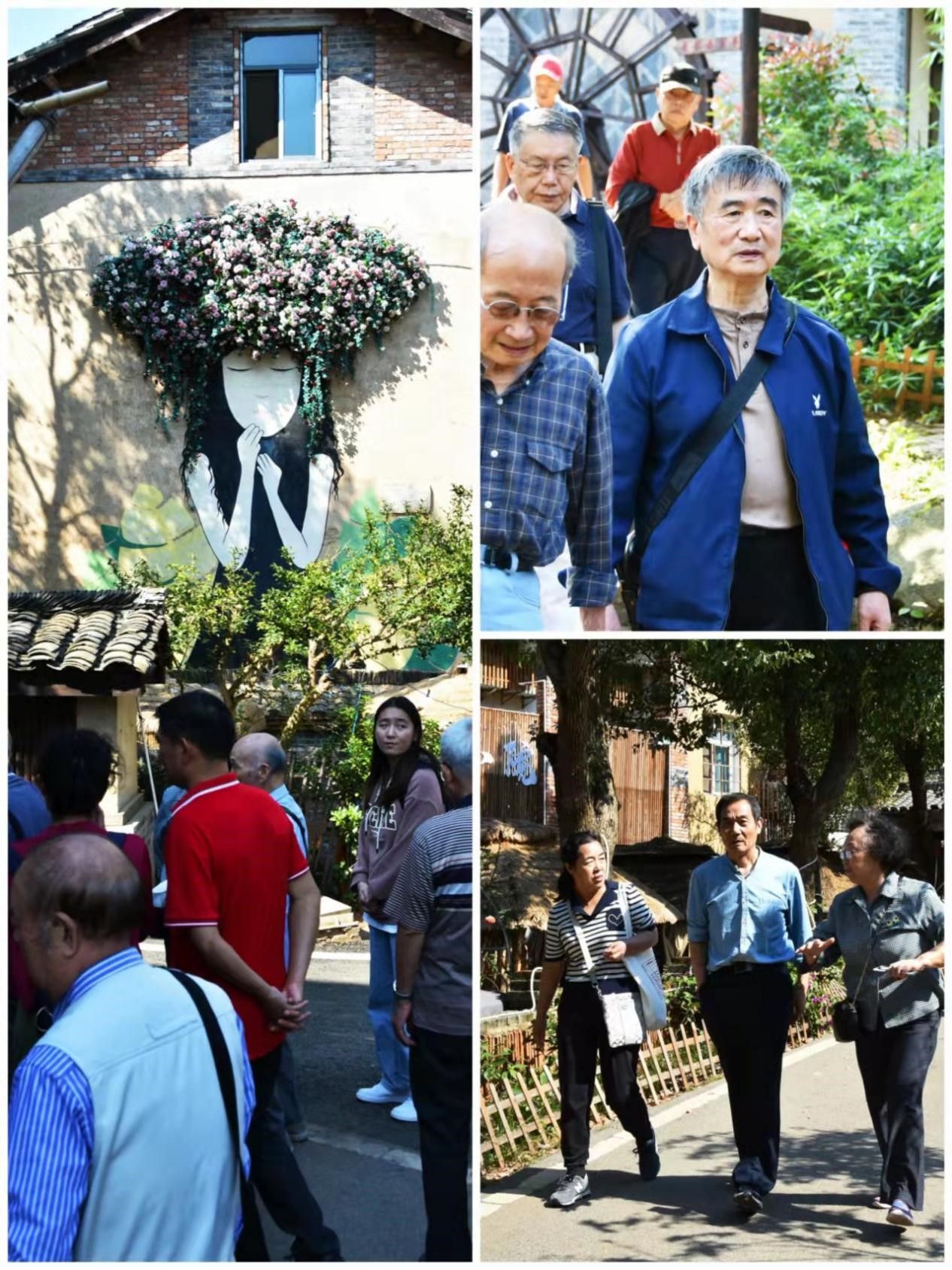 行走在村湾,目之所及,村舍错落、格局雅致,小径通幽,文化创意随处可见。大家兴致勃勃,边走边看、边看边聊,畅谈农村新貌、时代变迁,共叙昔日同窗同事情谊,留下一路欢声笑语。
