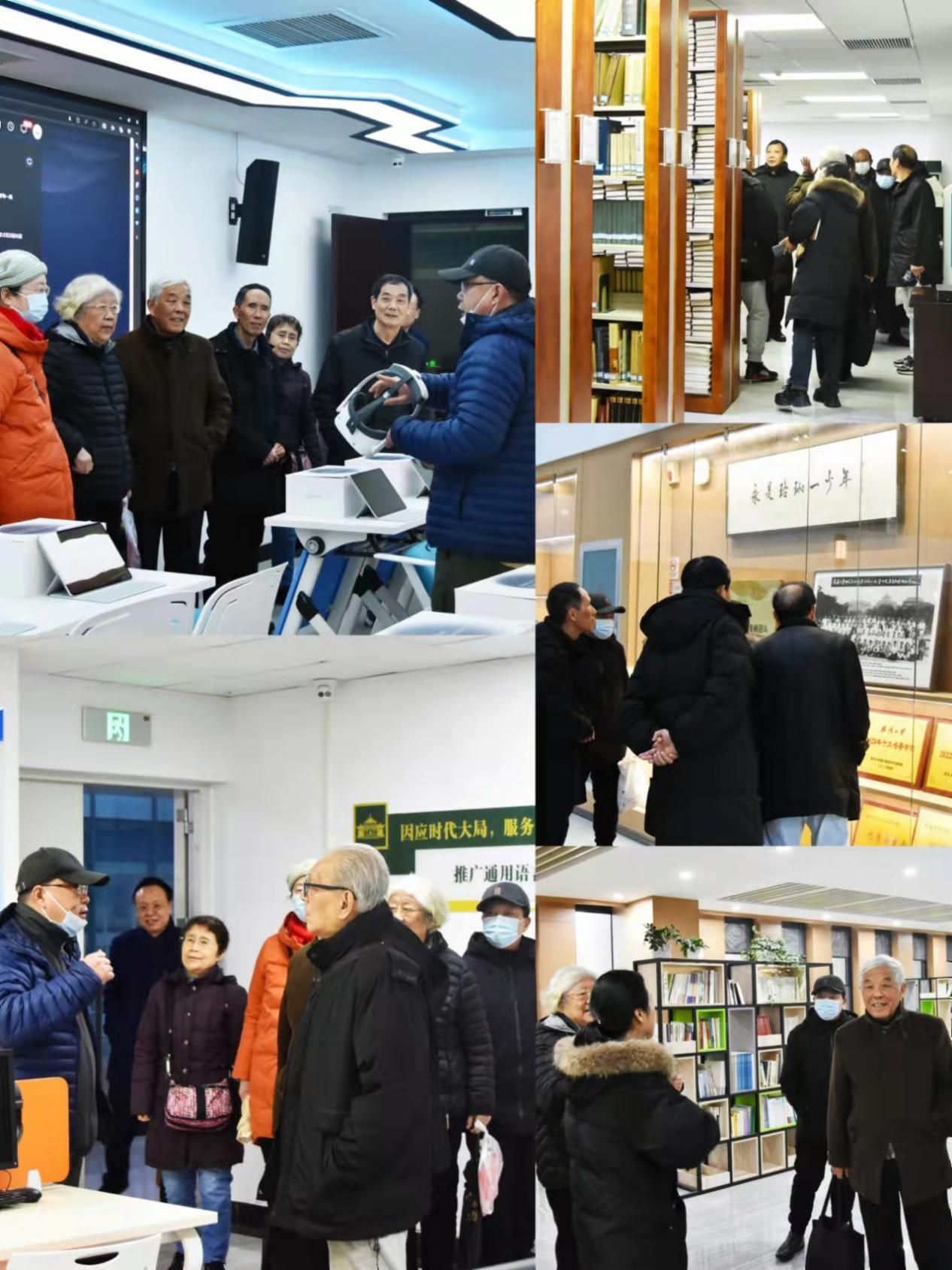 座谈结束后,一行人先后参观了学院综合资源中心和实践教学中心,大家对“人工智能写作创研实验室”的设备非常感兴趣,纷纷感叹学院教学设备的进步。在学院一楼大厅,老同志们现场感受了师生共享学习空间、多功能会议室、宣传展示橱窗、学院主背景墙等文化空间布局,大家纷纷驻足留影。陈美兰老师说,现在的环境氛围真是比当年好太多了,院徽、院牌、展示橱窗等都很有文学院特色和文化品位。(通讯员李少峰 摄影李少峰 审核王若飞)