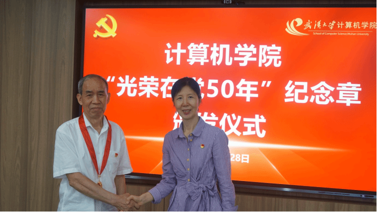 6月28日,在中国共产党诞辰103周年之际,计算机学院党委举行“光荣在党50年”纪念章颁发仪式。学院党委书记边金鸾、副书记高卫松、纪委书记杨晓岚以及离退休一校区支部委员和老协代表等参加颁发仪式。杨晓岚主持仪式。