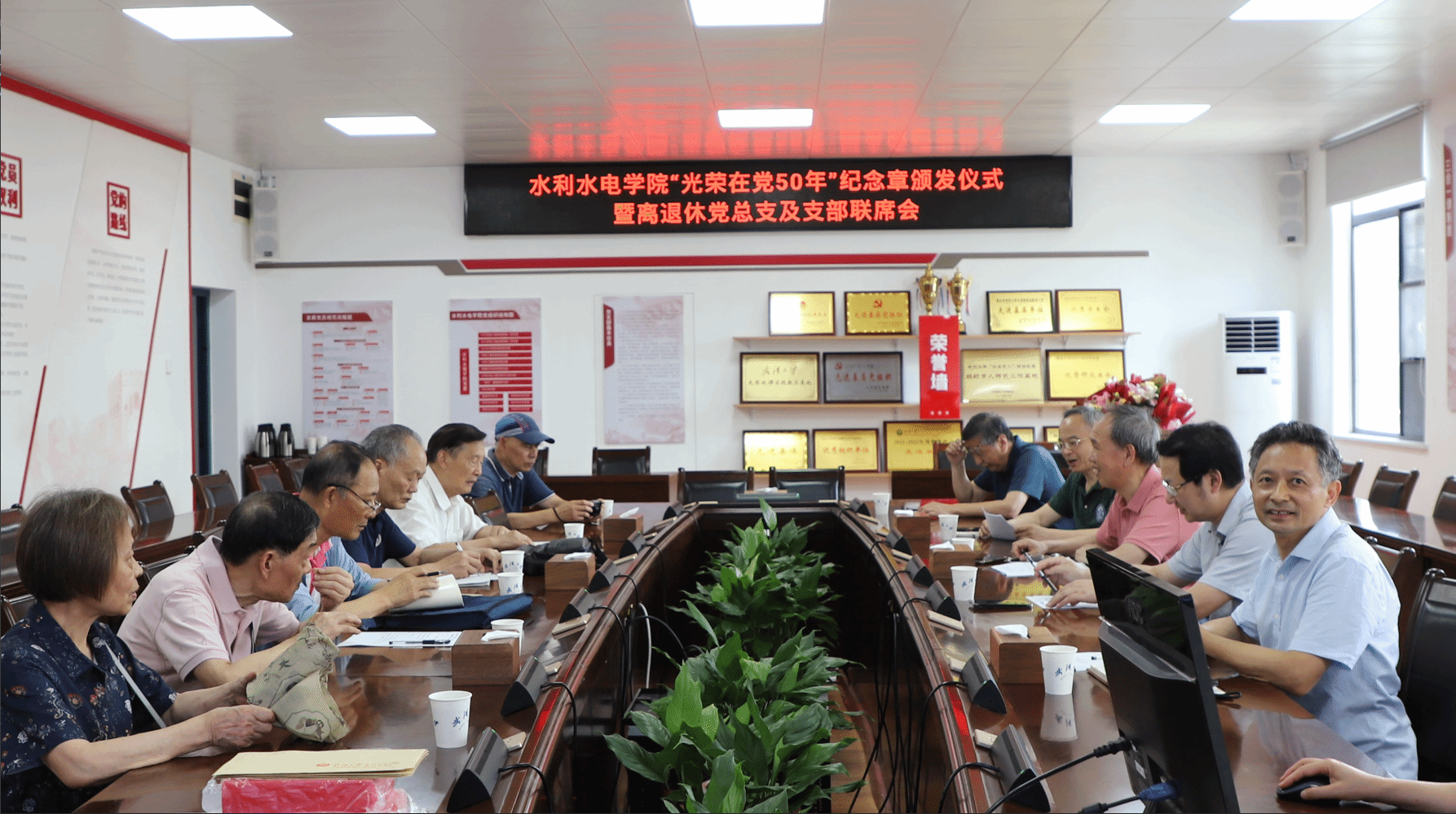 7月2日下午,水利水电学院举办“光荣在党50年”纪念章颁发仪式暨离退休党总支、老协和支部联席会。学院党委委员、副院长(主持工作)刘攀,离退休党总支委员,老协和关工委负责人,各离退休支部书记及委员参加会议。会议由离退休党总支组织委员梅亚东主持。