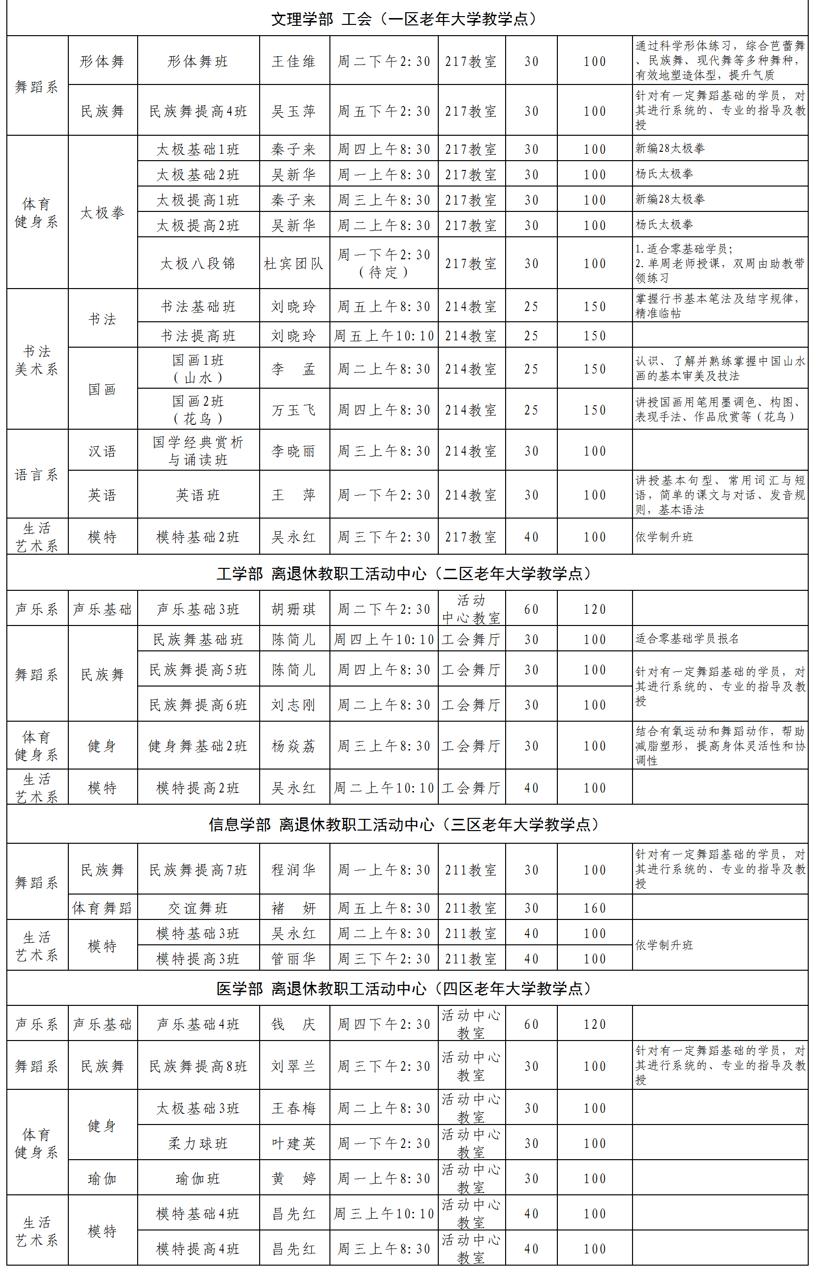 6.招生期间,老年大学办公室工作人员将提供报名咨询及协助报名服务。咨询地点及电话:文理学部离退休教职工活动中心105、103办公室;68762800、68762822。
