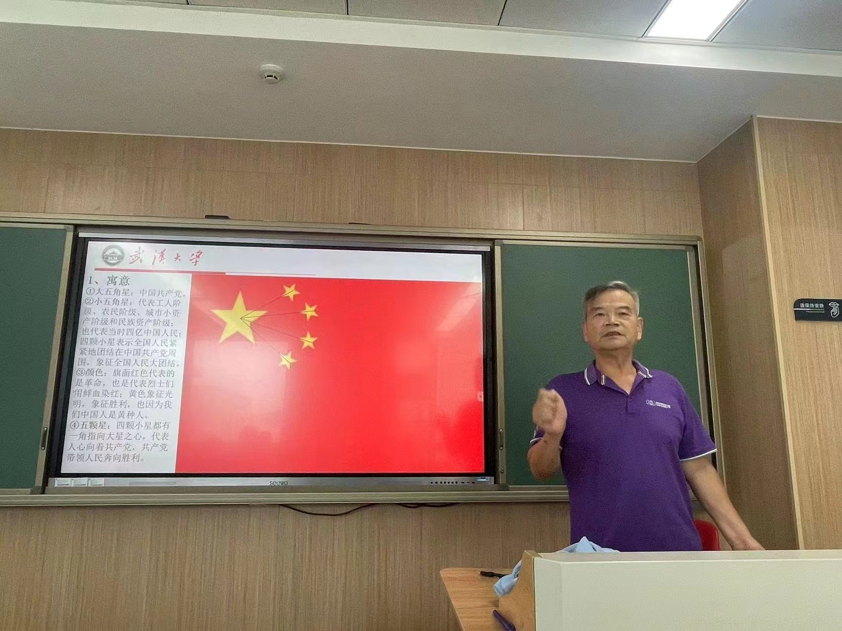 他认为:国旗是一个国家的象征,作为一个中国人、一名大学生不可以不了解五星红旗的画法及内涵。自2012年开始,他在计算机绘图教学中率先引入国旗、团旗、党旗、军旗作为教学实例,逐步将这四面旗帜的内涵融合在教学中,培养学生的爱国情怀。